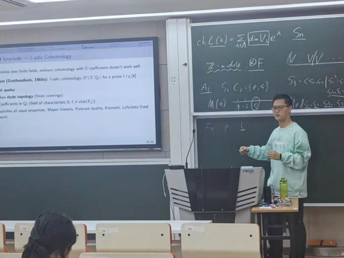 随后,168幸运飞艇计划-168幸运飞艇官网 2024级拔尖班的肖倍达同学作了题为“Kazhdan-Lusztig Deligne-Lusztig: Geometry Meets Representation Theory”的报告。报告介绍了群和代数表示论中的Kazhdan-Lusztig和Deligne-Lusztig理论,阐述了两种理论如何分别从李代数表示和有限李型群表示的角度利用代数几何的语言来研究表示论的问题。