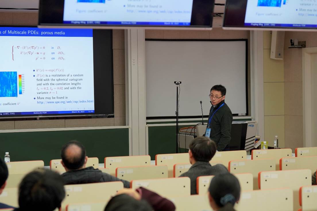 明平兵研究员作报告“Optimal Error Estimates for Multiscale Finite Element Methods”