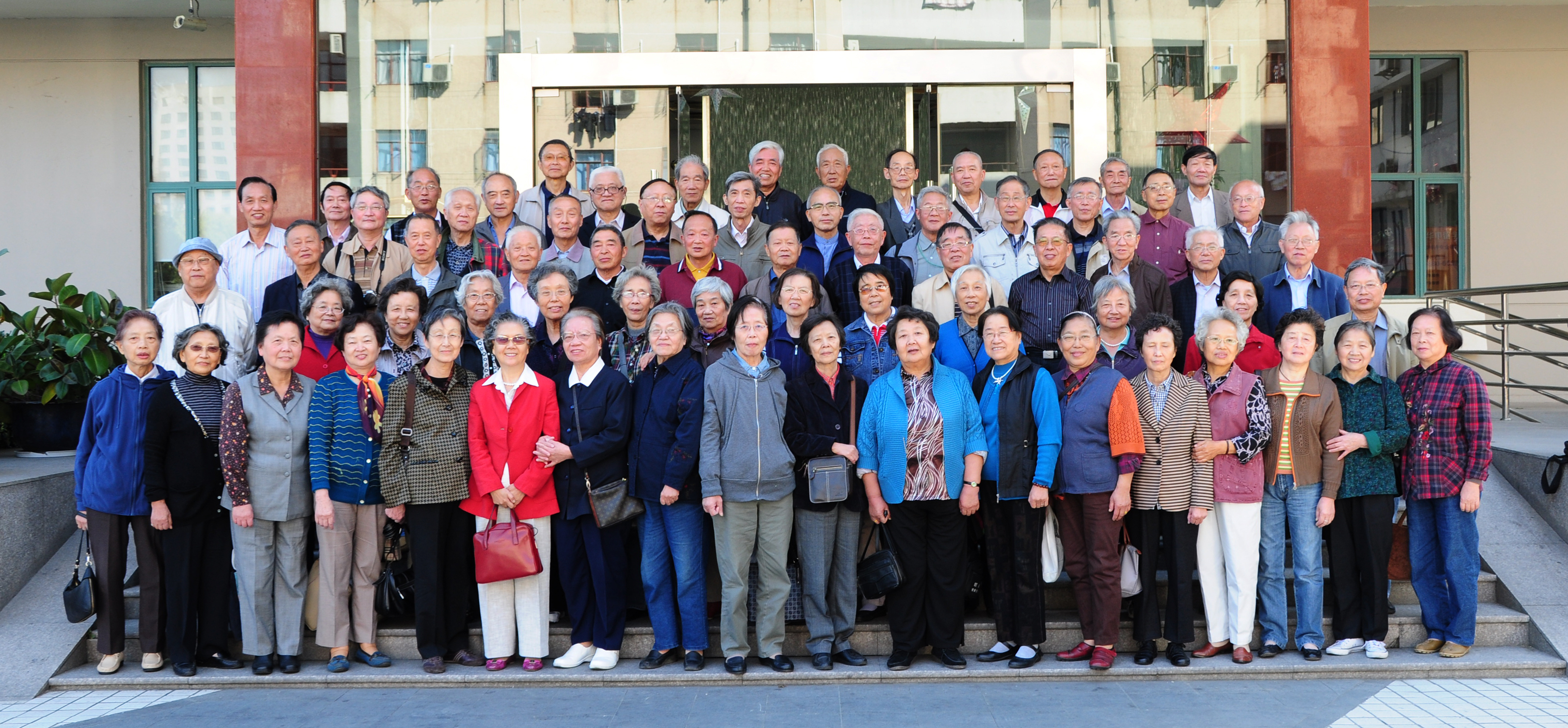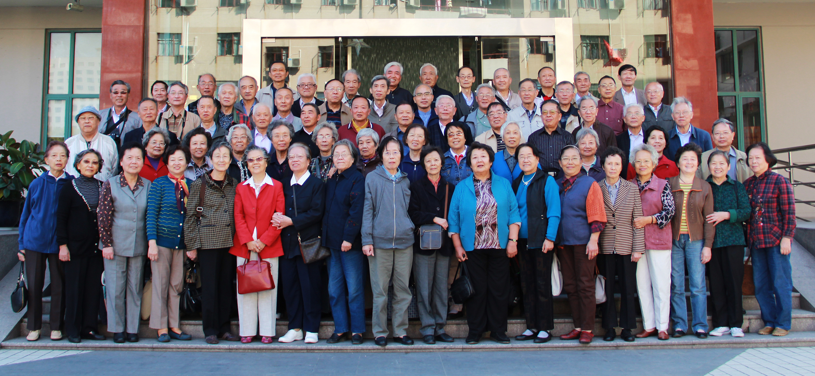 第一排左起:张金凤,朱佩玉,苏以德,姚玫明,廖有盼,缪启平,朱贵珍,孔云从,王如华,诸慎立,曹怡英,邹积芳,苏霞娣,林应凤,葛林荣,李逸琪,曹道芳,汪慧芬; 第二排左起:陆锦云,陆洲灏,凌美英,梁小筠,周慧康,欧景昭,方文娟,陈彩娥,陆月芳,裘慧君,王兴美,陈志杰; 第三排左起:张兴民,陶金纯,丁世根,陈骏元,陈宛平,胡亦亮,张福民,茅关森,郑廷沂,方仲伦,王群,王金宝,王与承; 第四五排左起:朱鋐道,周祚华,孙启仁,唐全根,谢剑秋,唐根生,侯元龙,陈嘉龙,许品芳,殷嘉言,许纪森,顾兴章,王锦华,谢安顺,范永祥,范护生,孙国华,陈保权,石斯理,戴自禄,赵国礼,胡国联,倪英,陈荣林,黄金林。 (李宝喜摄影)