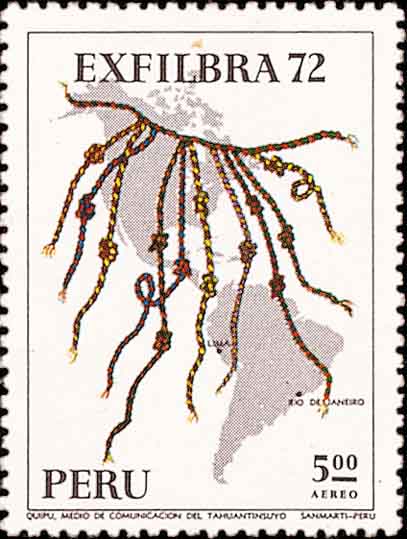 但是这些记数的实物容易散乱, 携带、保存也不方便. 于是就出现了用结绳记数, 这在我国《周易》中就说到“结绳而治”, 它指“结绳记事”或者“结绳记数”. 在世界其他地方人如希腊、波斯、罗马、伊斯兰国家和南美的印加帝国(它包括现在的玻利维亚、厄瓜多尔、秘鲁等地方)也都有结绳记事的记载或实物标本. 这种结绳制度在秘鲁高原甚至延续到19世纪. 图1是结绳记数的实物标本图示, 图2是传递结绳记事的印加信使, 图3的右侧是结绳记数的画面.