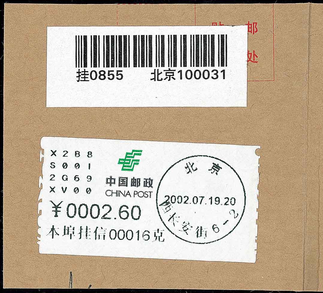 一组数字用条形码的形式来替代,是为了便于计算机的探头快速识别。比如在超市里,每一件商品的标签上,除了注明商品的名称、数量、价格以外, 还印有一组条形码(即该商品的数字代码)。收银员用收银计算机上的探头对准条形码扫描一下,在显示屏上就出现了你所购买商品的名称和价格。 这种利用条形码的方法在其他领域也被广泛使用。如在邮政部门,它的各项业务也都分别设定了一组数字代码,并转换成条形码。 图1(中国,1995)上的条形码表明它是浙江天台寄出的邮政快件,图2(中国,2002)上的条形码是北京寄出的挂号邮件。因此,计算机和条形码使各项邮政业务更加科学,更加便捷。