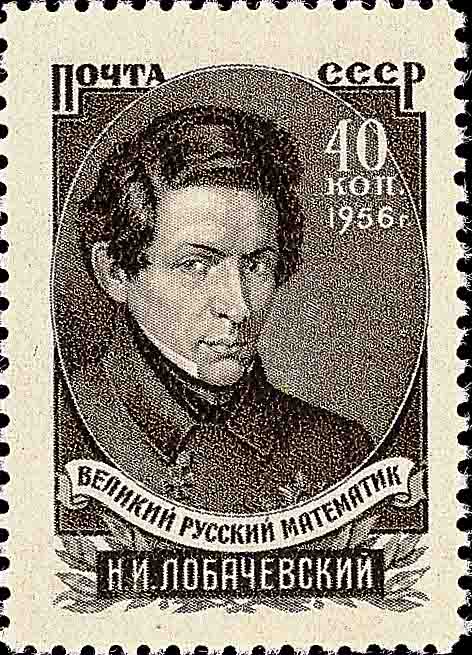 图 3 是俄罗斯在 1992 年发行的纪念罗巴切夫斯基诞生 200 周年的邮资信封.