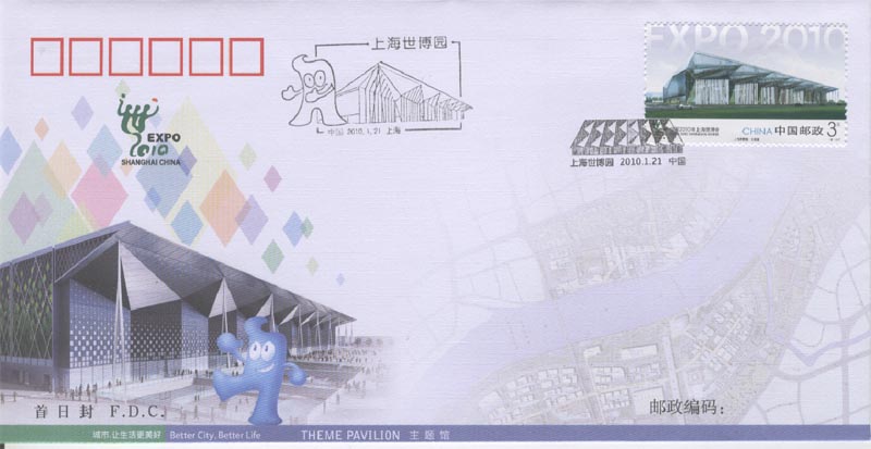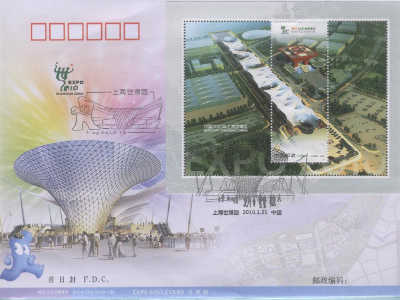 图 35-2(中国世博轴纪念邮票、纪念邮戳、首日封)